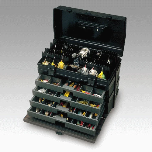 The VS-8010 body is made with high impact resistant copolymer and includes 36 adjustable compartments with 8 divider racks which can store up to 108 Spinnerbaits.